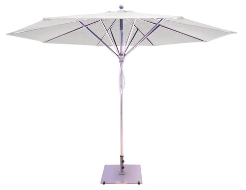 Sunbrella fabrics come with a standard 5 year limited no fade warranty. Please allow 3-4 weeks for production and shipment of your umbrella. While these products generally arrive in 3-4 weeks, please remember this is an estimated time and is not a guarantee. These commercial umbrellas include a 5 year Sunbrella fabric fade warranty and a 2 year commercial warranty (excluding wind damage). Note: This umbrella will not fit through a table due to the length of the ribs and diameter of the pole.