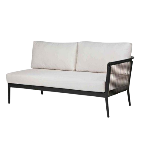 The Copacabana collection from Ratana is visually striking, featuring a clean, open, contemporary design and modular configuration. With premium, tailored deep cushioning, this contract-graded collection is extremely durable and weather resistant, offering many seasons of enjoyment. A classic black powder-coated aluminum frame is complemented by a brown braided Durarope™ (constructed of sturdy PVC tubing and a fibre core). Copacabana will transform any outdoor space into a luxurious oasis.