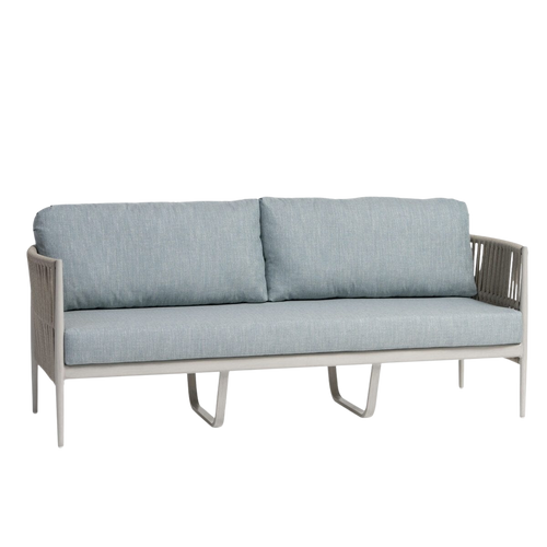 Lineas, Spanish for lines, marries Durarope™ weaving with a rounded barrel styled silhouette. The Lineas’ frame has a hand-brushed whitewashed finish and the chair’s tapered round legs offer a sleek design reminiscent of lounging in the Hamptons with a good book and a strong cocktail. Designed to withstand the elements, the triple-weave Durarope™ in Linen color, is UV and weather resistant to keep your new favorite outdoor set flawless for years to come.