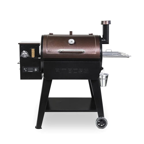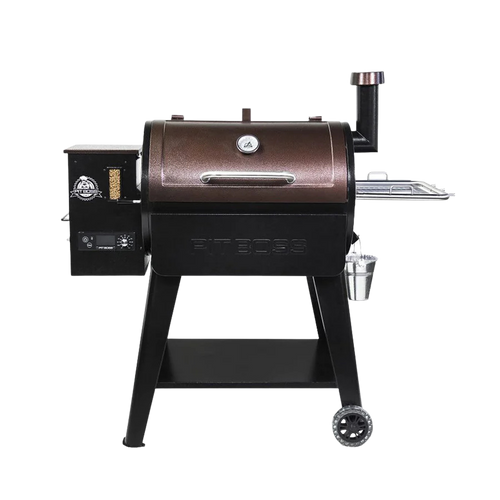 Craft bold hardwood flavor with the Pit Boss PB820D3 wood pellet grill. Using 100% all-natural hardwood pellets, you can grill, smoke, bake, roast, sear, braise, barbecue, and char-grill with one easy-to-use grilling machine. This heavy-duty grill can reach low and slow temperatures of 180°F or hot and fast heat up to 500°F. With the easy-access flame broiler lever, you can cook with indirect heat. Then quickly open the slide-plate flame broiler for 1000°F direct-flame searing. The PB820D3 boasts 849 square inches of cooking area for all your cooking needs. Deluxe features include the stainless-steel removable side shelf with BBQ tool hooks, temperature regulating smokestack, solid bottom shelf, and an attractive mahogany finish.