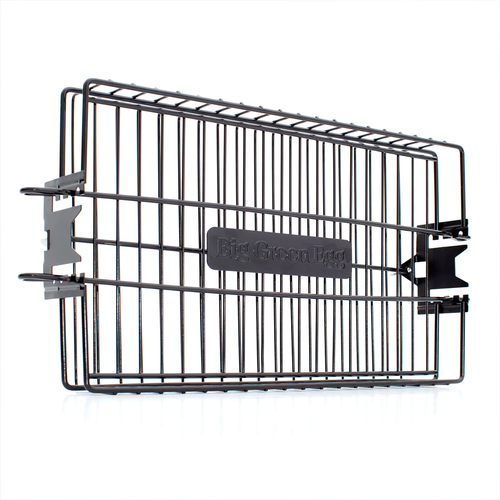 Designed to work with the Big Green Egg Rotisserie Kit, the non-stick coated steel rectangular basket is ideal for delicate items such as fish or kebabs. Adjustment tabs allow you to customize the depth of the basket for a tight grip on food.