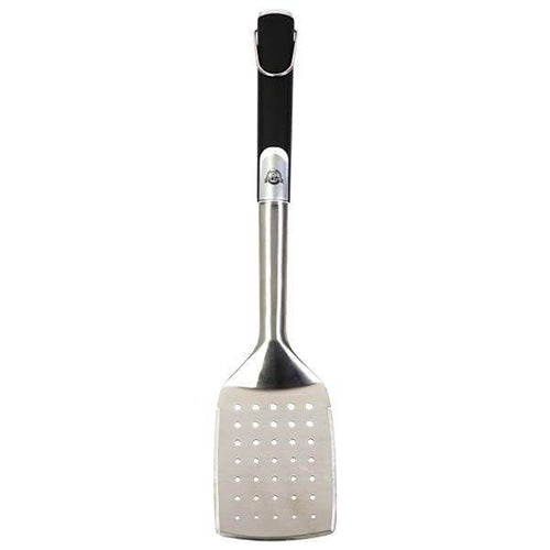 Take your cooking to the next level with the Pit Boss Soft Touch Spatula. You’ll enjoy the heavy-duty build of a tool designed to withstand years of indoor or outdoor use. The Pit Boss Soft Touch Spatula has an extra-wide spatula head that’s ready to step up to the challenge of lifting or flipping anything from burgers to briskets. With the surface hole design, you can quickly drain meats, marinades, or extra fat off foods as they move to and from the grill, while the dual edge spatula serves as a heavy-duty meat cleaver and a meat tenderizer in one. Additional features of this stainless-steel spatula include an extra-long handle, a high-heat resistant nylon polymer grip, and a quick storage hanging loop.