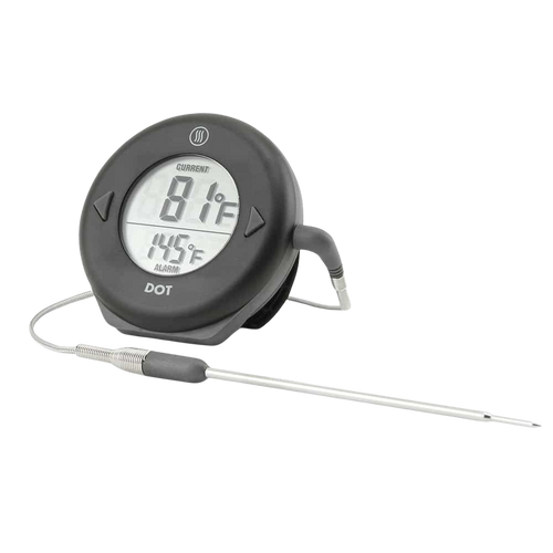 DOT is engineered to do one thing really well. Set your target temperature with the up or down buttons, insert the probe in your food, and DOT beeps when it gets there. Simple as that. Hit any button and the beeping stops. The display still flashes till your temperature drops below the setpoint. DOT uses any of the Pro-Series probes designed for our popular ChefAlarm. The included 4.5-inch probe reads temperatures up to 572°F with a cable that withstands 700°F. Designed for commercial food service, DOT beats houseware brands for intuitive usability and survivability.