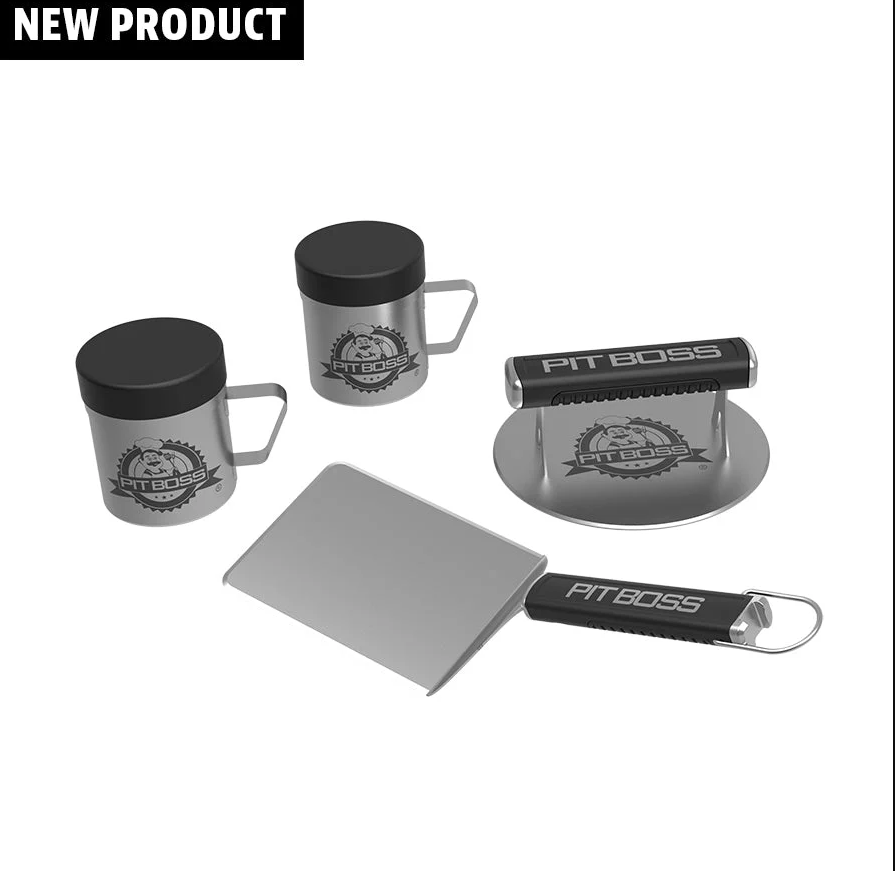 Achieve the perfect smash burger in your own backyard with the Pit Boss Smash Burger Kit. This set has everything you need to prep, cook, and serve delicious burgers. Fill the shaker bottles with your favorite seasonings, and use the burger press to get perfect, smashed patties. The big head spatula is ideal for flipping and serving – plus it features a bottle opener on the end, so you don’t have to leave your griddle’s side to enjoy your favorite beverage.