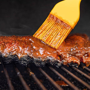 Whether you’re saucing up ribs, basting poultry, or glazing rolls you want a brush with an even, wide delivery in every stroke. We couldn’t find one that we loved, so we made our own. Made for the professional chef and pitmaster, it’s 85, 2.1-inch long silicone bristles are perfectly spaced to hold and transfer a 2-inch wide hearty stroke of sauce right where you need it. A 12-inch long ergonomic handle feels good in your hand and keeps you further away from heat than smaller flimsy brushes. The new ThermoWorks Silicone Brush is BPA- and stain-free, rated to 600F and easily cleaned in the dishwasher. Choose from 10 colors to prevent cross-contamination, to match your Thermapen, or just to let your BBQ team know it’s yours. Unload twice the sauce in every swipe with a silicone brush from ThermoWorks, the trusted leader in temperature and BBQ.