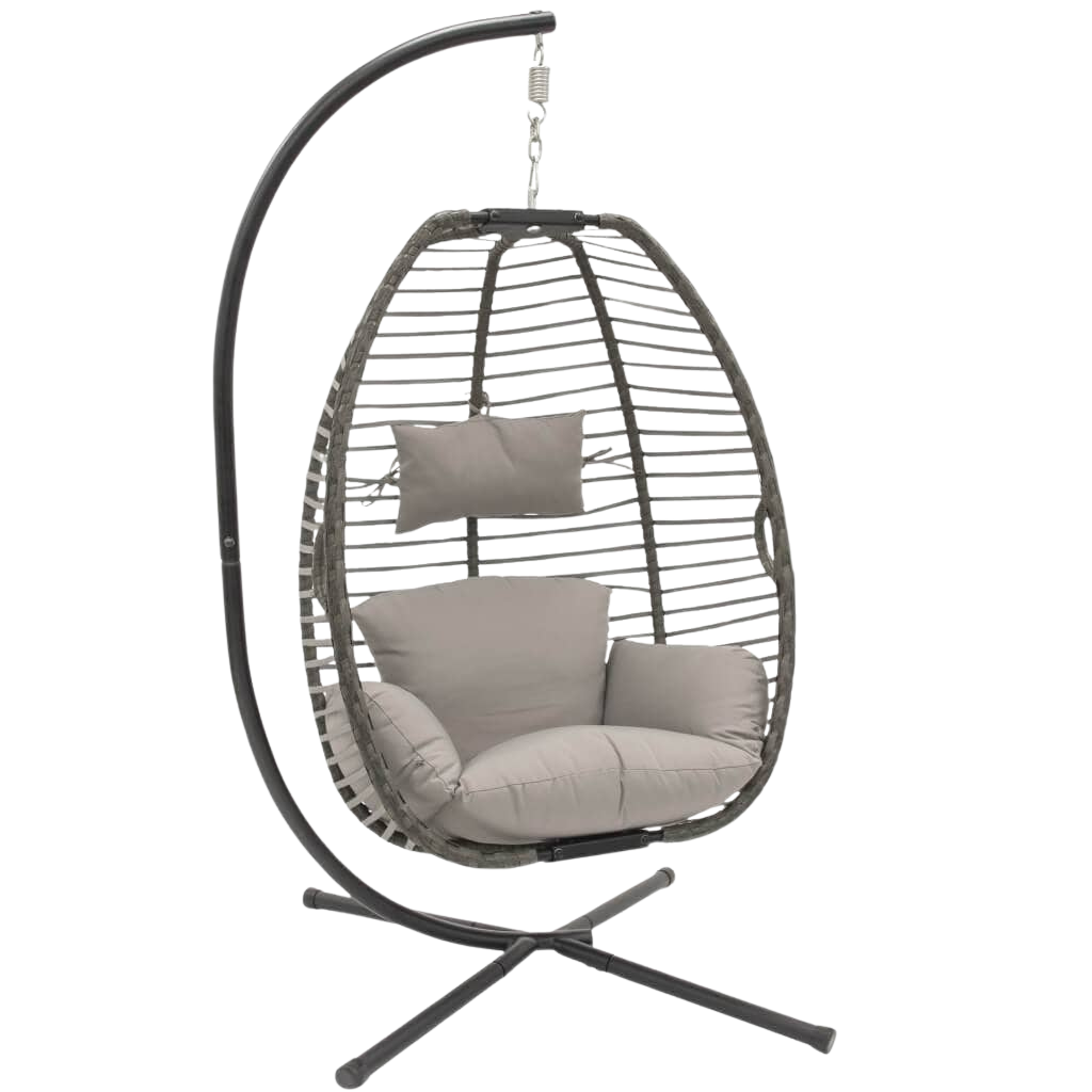 Create your Nest in this hanging chair with its ultra-plush cushions and comfortable webbing designed with your personal comfort in mind. Hang at your desired height, curl up with a good book, your favorite beverage or maybe just your daydreams. Made with an easy-to-assemble frame, this chair can easily be stored if it’s not moved indoors during the off-season.