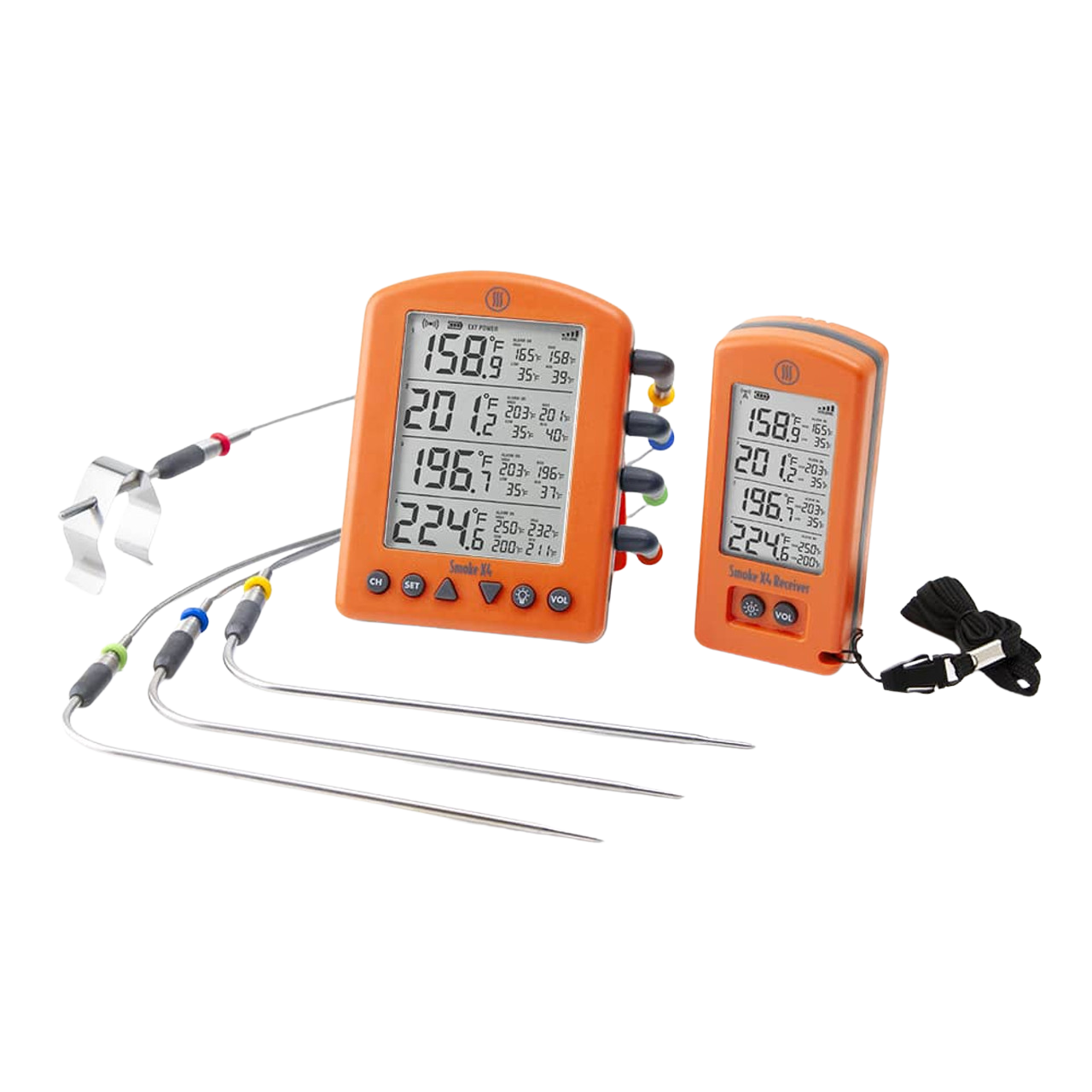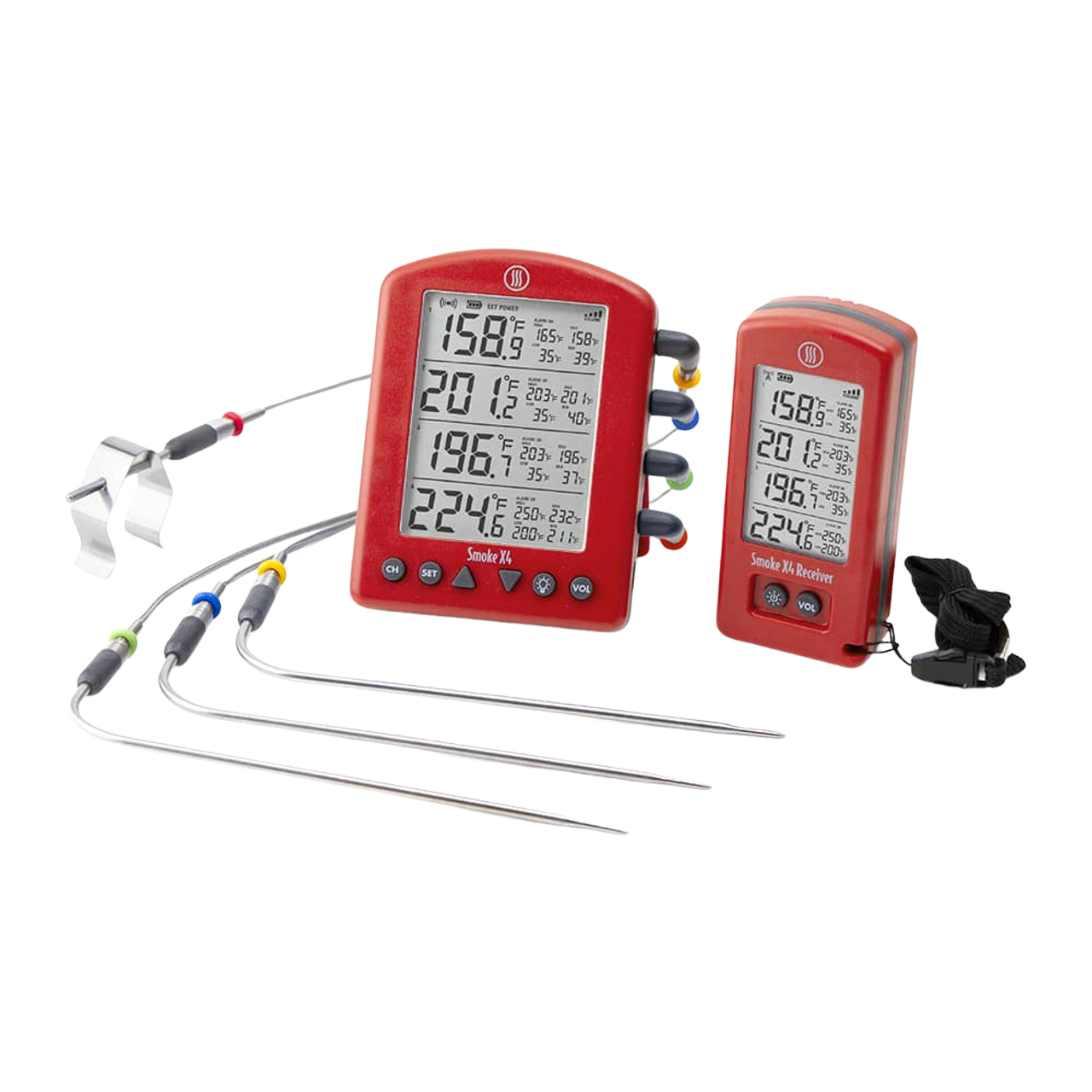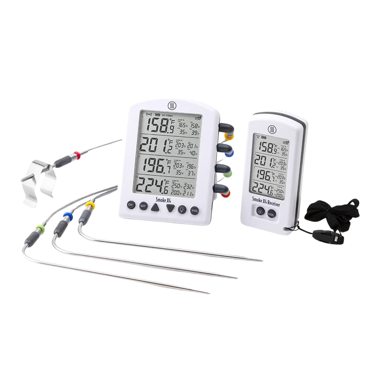 Smoke X is a BBQ Alarm thermometer with ThermoWorks quality and performance. Built with all-new RF wireless technology, Smoke X gives you up to 6,562 feet (1.24-mile) line-of-sight transmission distance to the included Smoke X Receiver, and max signal strength to penetrate walls so you'll always be connected anywhere in your home or yard.