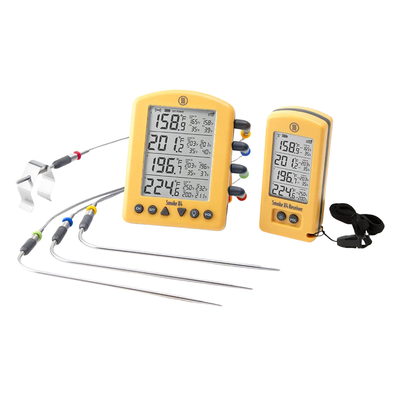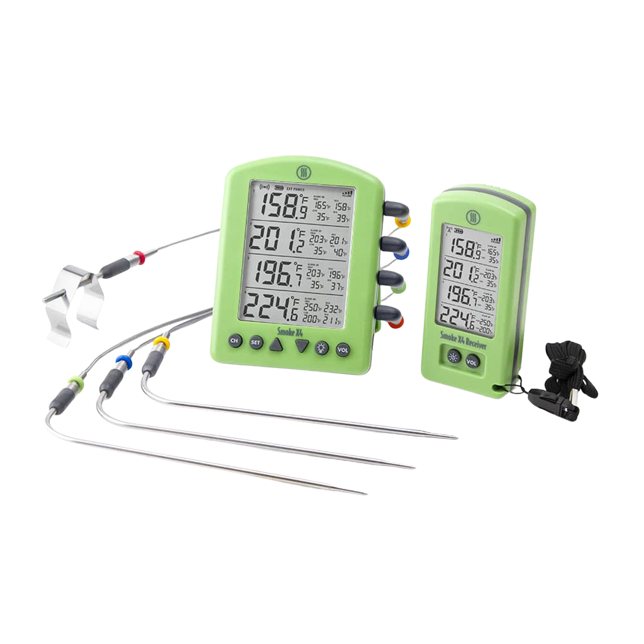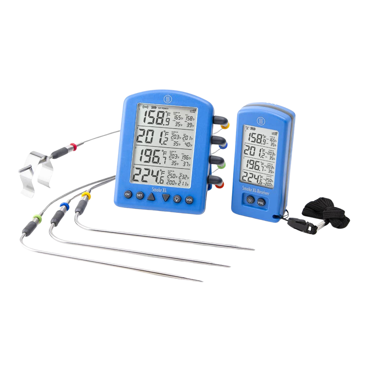 Smoke X is a BBQ Alarm thermometer with ThermoWorks quality and performance. Built with all-new RF wireless technology, Smoke X gives you up to 6,562 feet (1.24-mile) line-of-sight transmission distance to the included Smoke X Receiver, and max signal strength to penetrate walls so you'll always be connected anywhere in your home or yard.